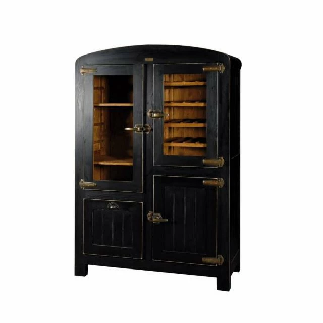 Armoire bistro noire & cirée L125 X P55 X H190 2 portes vitrées 1 porte 1 tiroir