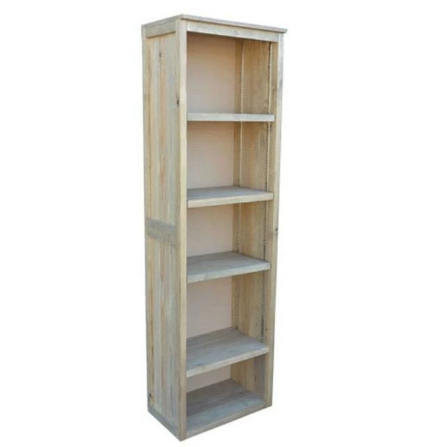Armoire étroite finition bois vieilli. Livrée montée avec 4 étagères dont 3 réglables (tous les 2 cm).