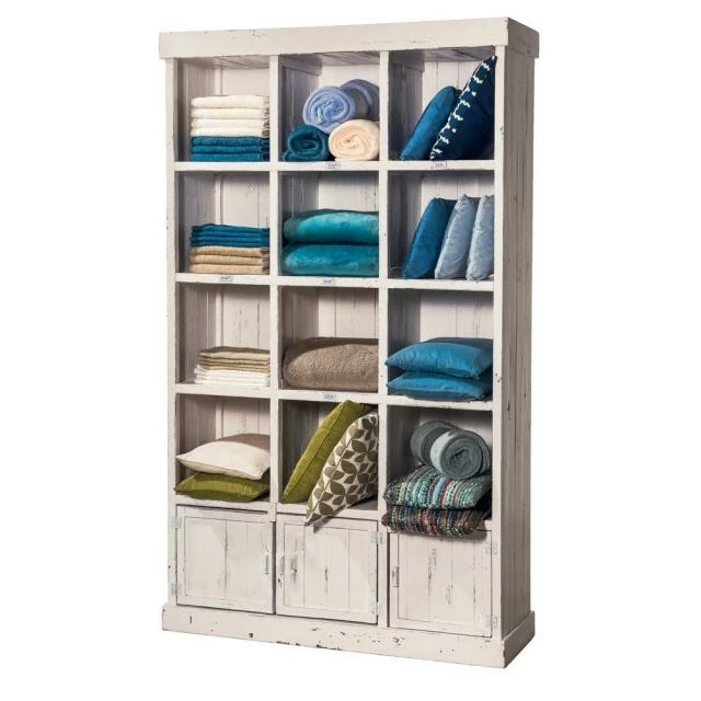 Vente flash ???? Buffet Bas Héritage Blanc Patiné 6 Cases 3 Portes L119 X P39 X H110cm ????
