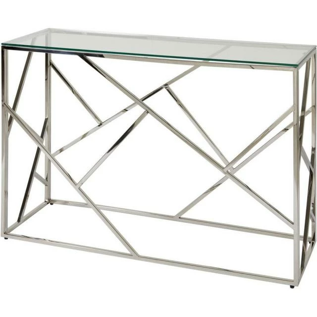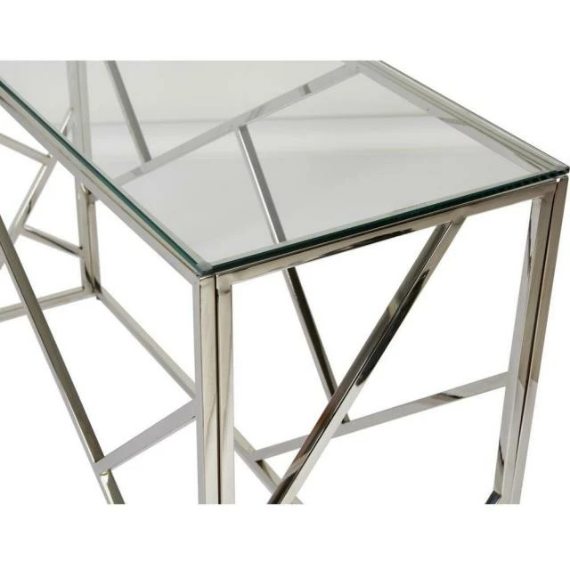 Matières: Plateau Verre Pieds Metal Dimensions produit: 78 (H) x 40 (l) x 120 (P) cm Plateau Verre Rectangle 120 x 40 cm Couleur(s): Gris, Poids net: 16 kg