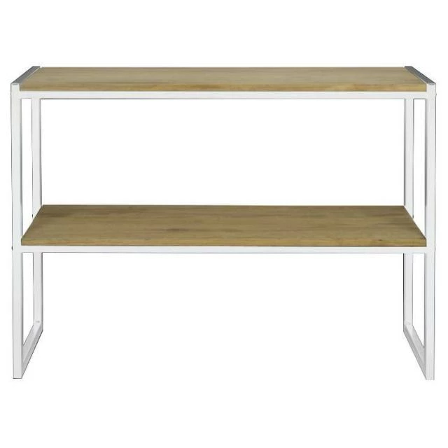 Console Icub double plateau. Bois vieillie style industriel. Profondeur 32cm x Longueur 100cm x hauteur 75cm. Couleur blanc.Conçue et fabriqué en Espagne . Une pièce robuste qui apportera la chaleur du bois naturel à n’importe quel ambiance.
