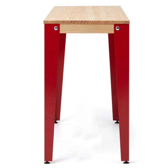 Console en style scandinave. Longueur 110cm x Profondeur 39cm x hauteur de 75cm. Métal Rouge, bois finition Naturel. Conçue et fabriqué en Espagne.