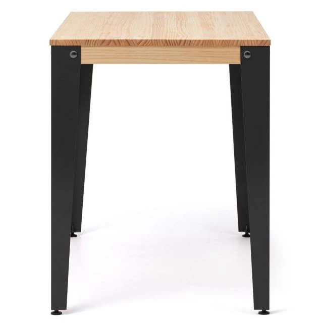 Plateau en bois massif de pin fini avec des huiles naturelles, avec haute résistance à l’usage et certification écologique. Touchée très agréable à bois naturel. Très solide avec pieds métal en 2 mm. d’épaisseur coupé à laser. Finition avec peinture en poudre sechée au four à l’haute température.