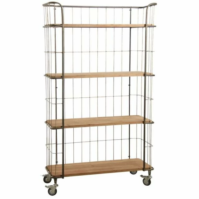 Etagère en bois et métal sur roulettes, 4 niveaux. Prêt à monter.