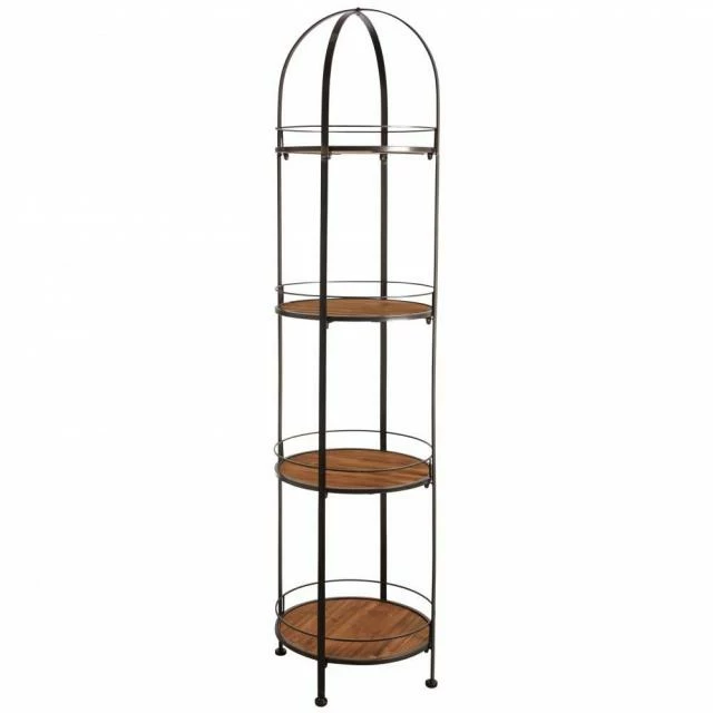 Etagère ronde en métal avec plateaux en bois. 4 étages.