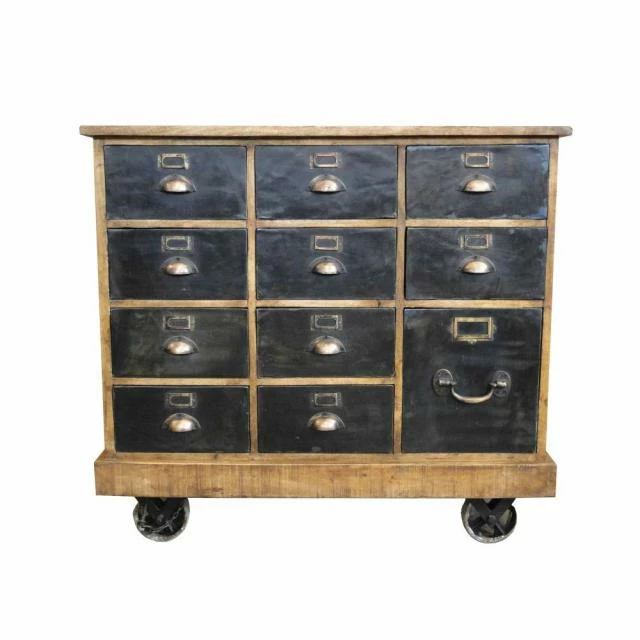 Bon marché ???? Commode En Bois Recyclé Et Métal 14 Tiroirs 110x37x90 ????