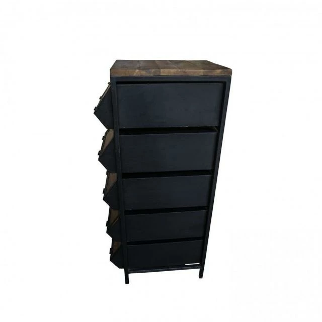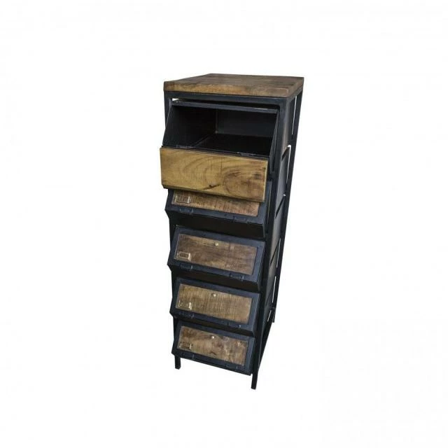 Meuble 5 casiers en fer et bois ciré L45 X P65 X H143