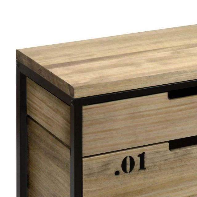 Meuble TV IcubThree avec tiroir et conteneur style industriel vintage en bois massif et métal en noir. Longueur 120cm x Profondeur 40cm x hauteur de 45cm. La beauté de la simplicité et du minimalisme, et des matières premières. Le style de mobilier industriel vintage prend ses caractéristiques des vieilles usines ou espaces industriels, auxquels des solides pièces en bois massif sont combinées avec des éléments metalliques qui font l’union et au même temps leur confèrent une extraordinaire résistance à l’usage. Plateau en bois massif de pin fini avec des huiles naturels, avec haute résistance à l’usage et certification écologique. Touchée très agréable à bois naturel. Structure en tube d’acier de 1,5 mm. d’épaisseur. Finition avec peinture en poudre séchée au four à l’haute temperature. Haute résistance.