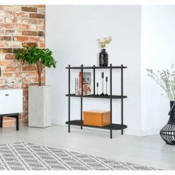 Tout neuf ✔️ Etagere Scandinave 3 Niv, Structure Métal Noir, Plateaux Bois Noir 80x30x83cm ????