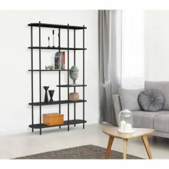Tout neuf ???? Etagere Scandinave 6 Niv, Noir Struct. Métal Noir, Plateaux Bois 100x30x169 Cm ????