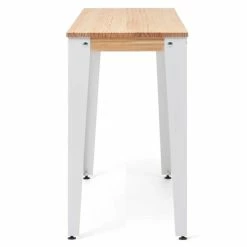 Offres ???? Console Scandinave Lunds 39x110x75cm Métal Blanc-plateau Bois Finition Naturel. ????