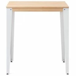 Le moins cher ???? Table Mange Debout Lunds 80X80x110cm Blanc-plateau Bois Finition Naturel. ????