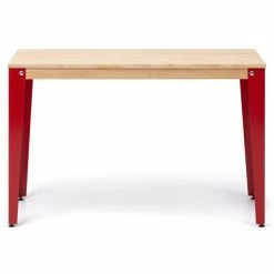 Nouveau ???? Table Salle à Manger Lunds 80x160x75cm Rouge-plateau Bois Finition Naturel ????