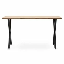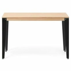 Sortie ???? Table Salle à Manger Lunds 80x160x75cm Métal Noir-plateau Bois Finition Naturel ????
