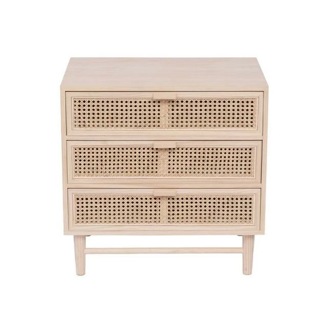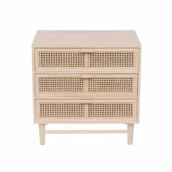 Fonction: Ses 3 tiroirs en rotin/cannage offrent avec style des possibilites de rangements pratiques. Les poignees sont en metal finition chromee.