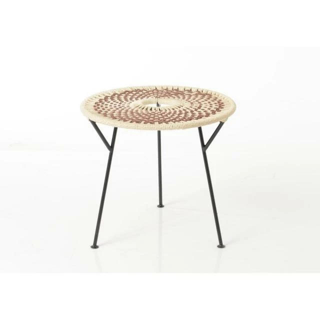 Table basse en métal avec plateau tressé avec une finition qualitative pour apporter une note bohème et un esprit nature à votre boutique.