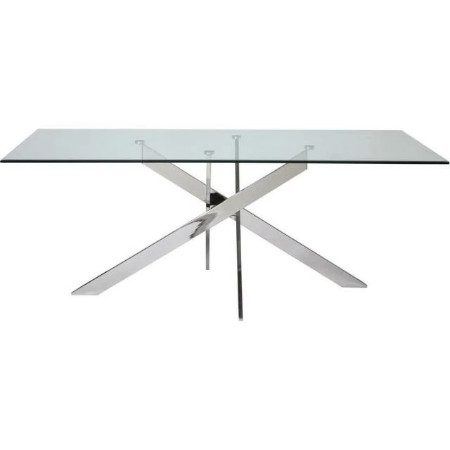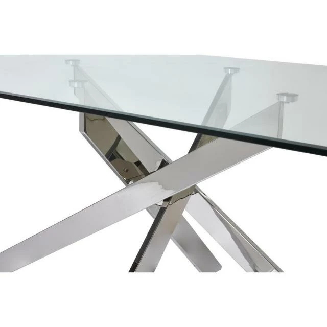 Matières: Plateau Verre Pieds Metal Dimensions produit: 76 (H) x 100 (l) x 200 (P) cm Plateau Verre Rectangle 200 x 100 cm 6 couverts. Couleur(s): Argent, Poids net: 68 kg