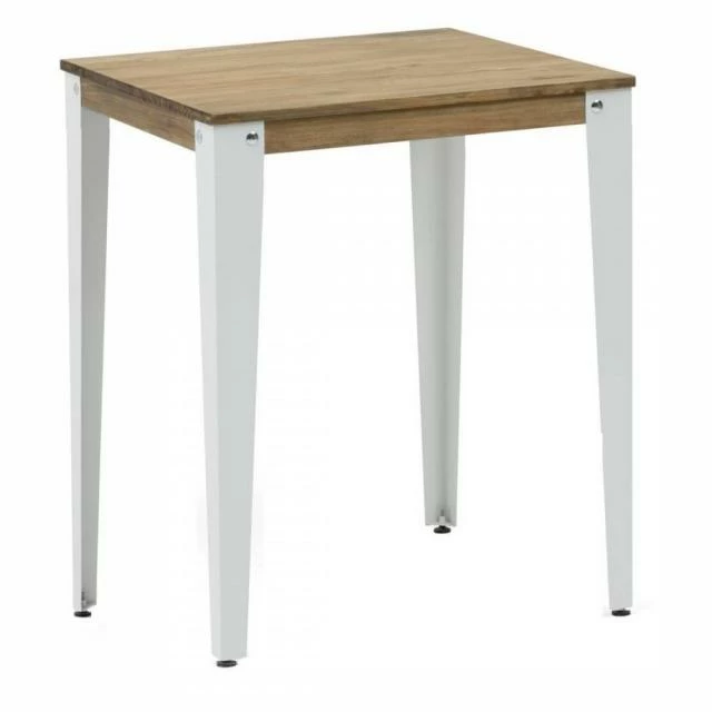 Table Mange debout Lunds en style industriel vintage. Longueur 59cm x Profondeur 59cm x hauteur de 110cm. Métal Blanc, bois finition vieilli “effect vintage”. Conçue et fabriqué en Espagne.
