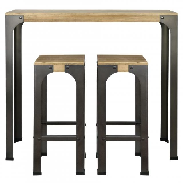 Table haute de bar, mange debout en style industriel vintage. Parfaite pour créer une ambiance industrielle dans un bar, bistrot ou restaurant. Le style de mobilier industriel vintage prend ses caractéristiques des vieilles usines ou espaces industriels, auxquels des solides pièces en bois massif sont combinées avec des éléments metalliques qui font l’union et au même temps leur confèrent une extraordinaire résistance à l’usage. Plateau en bois massif de pin fini avec des huiles naturels, avec haute résistance à l’usage et certification écologique. Touchée très agréable à bois naturel. Très solide avec pieds métal en 2 mm. d’épaisseur coupé à laser. Finition avec peinture en poudre sechée au four à l’haute température.