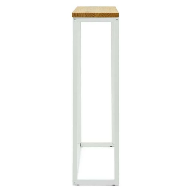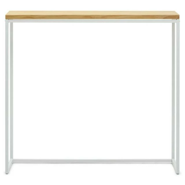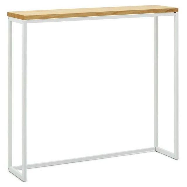Table haute type Mange debout en style scandinave en bois massif et metal. Métal Blanc. Longueur 120cmxProfondeur 30cmxhauteur de 110cm. Plateau de 30mm. La beauté de la simplicité et du minimalisme, et des matières premières. Plateau en bois massif de pin de 30mm. fini avec des huiles naturels, avec haute résistance à l’usage et certification écologique. Touchée très agréable à bois naturel. Structure en tube d’acier de 1,5mm. d’épaisseur. Finition avec peinture en poudre séchée au four à l’haute temperature. Haute résistance.