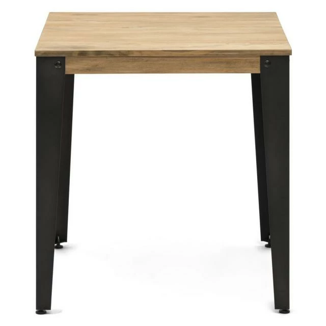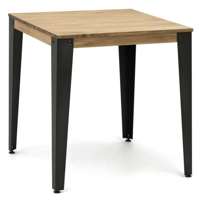 Table de salle à manger en style industriel vintage. Longueur 59cm x Profondeur 59cm x Hauteur de 75cm. Métal anthracite, bois finition vieilli effet vintage. Conçue et fabriquée en Espagne par BOX FURNITURE.