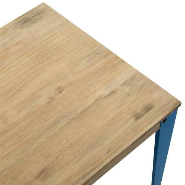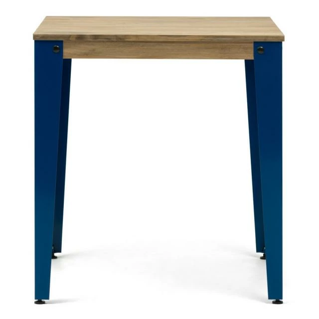 Table de salle à manger en style industriel vintage. Longueur 59cm x Profondeur 59cm x Hauteur de 75cm. Métal bleu, bois finition vieilli effet vintage. Conçue et fabriquée en Espagne par BOX FURNITURE.
