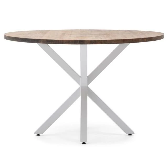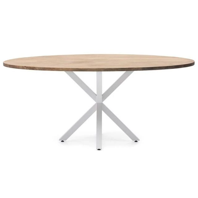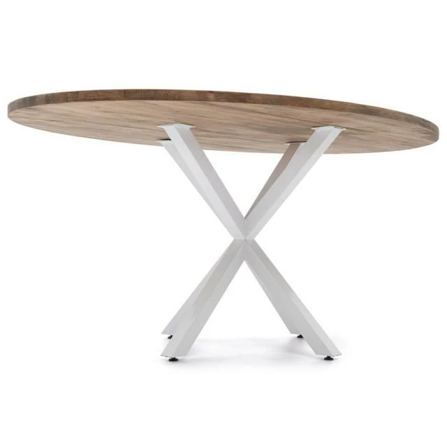 Table Ovale Pied étoile pour salle à manger en style industriel-vintage. Longueur 160cm x Profondeur 90cm x hauteur de 75cm. Métal Blanc, bois finition vieillie. Conçue et fabriqué en Espagne .