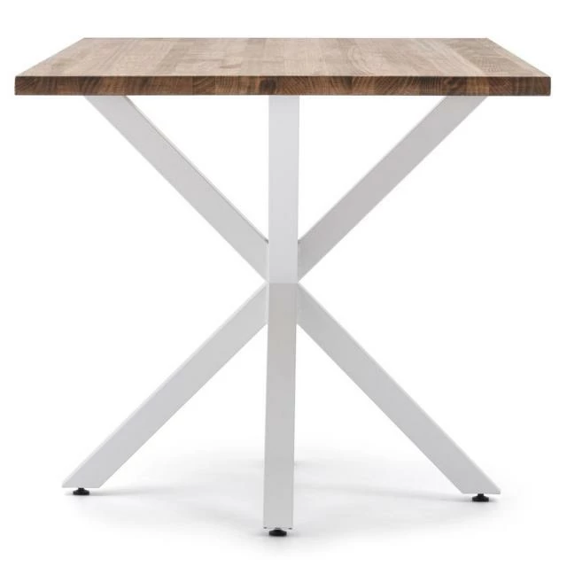 Table Pied étoile pour salle à manger en style industriel-vintage. Longueur 160cm x Profondeur 80cm x hauteur de 75cm. Métal Blanc, bois finition vieillie. Conçue et fabriqué en Espagne .