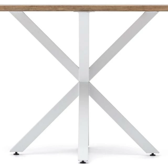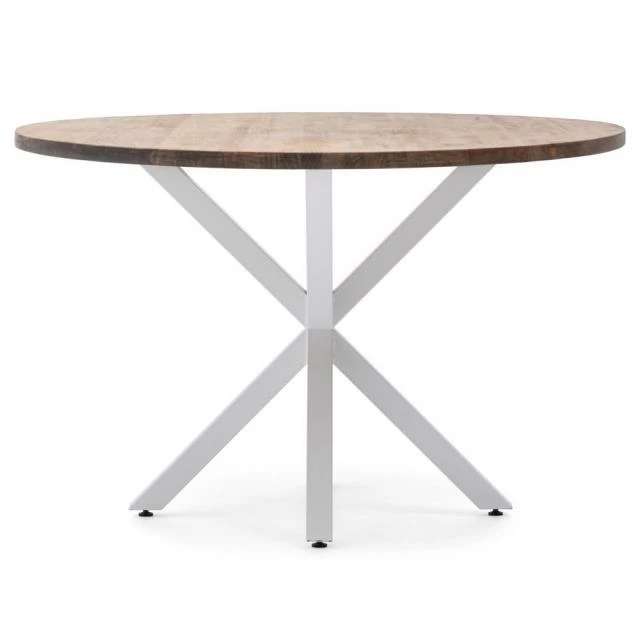 Table Ronde Pied étoile pour salle à manger en style industriel-vintage. Diamètre 120cm x hauteur de 75cm. Métal Blanc, bois finition vieillie. Conçue et fabriqué en Espagne .