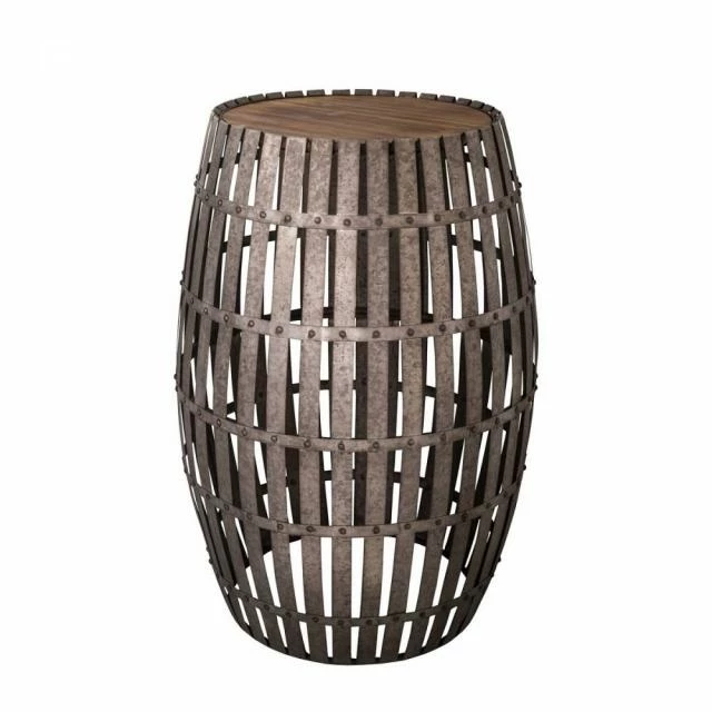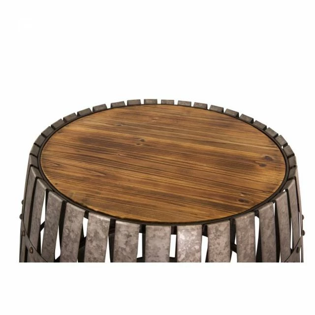 Tonneau de bar ajouré fer et bois ciré H: 100 Ø70 plateau Ø 52
