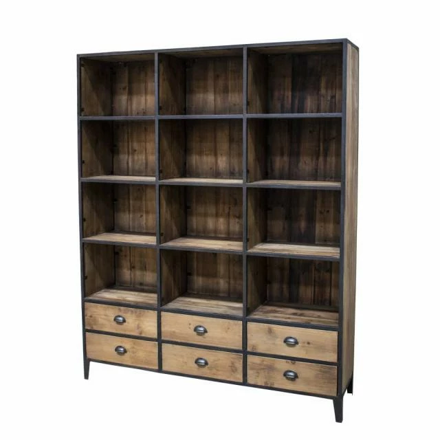 Bon marché ???? Commode En Bois Recyclé Et Métal 14 Tiroirs 110x37x90 ????